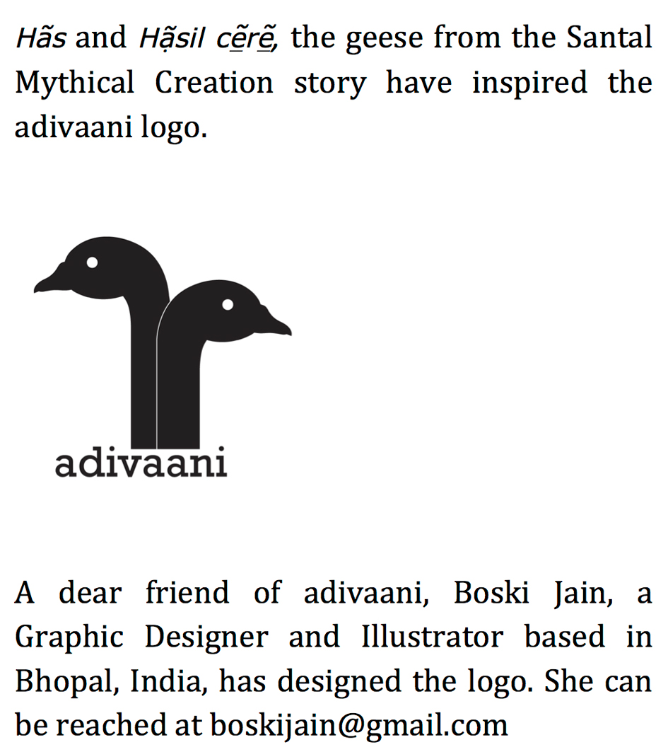 The Story Behind Our Logo Posted on September 2, 2012 by adivaani Reply A note from February, 2014: One of the geese looks to the past and one to the future and that’s what adivaani stands for in the present—we are trying to preserve ourselves and the deep and ancient roots that link us to our earth and our ancestors for generations to come. Share this: Click to print (Opens in new window) Print More Click to share on X (Opens in new window) X Click to share on Facebook (Opens in new window) Facebook Click to email a link to a friend (Opens in new window) Email Click to share on Tumblr (Opens in new window) Tumblr Like Loading...